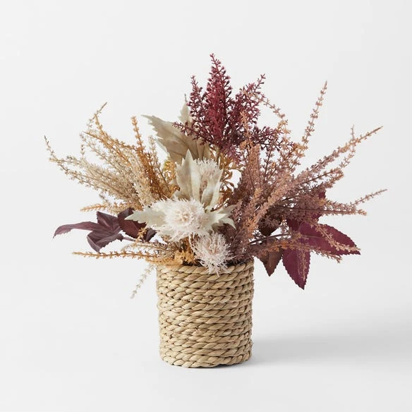 Bring the beauty of nature indoors with artificial plants. Faux florals and lush greenery will brighten the home just like real plants without the maintenance. Our Dried Arrangement Rope Pot features an Autumn mix for a burst of colour and texture.