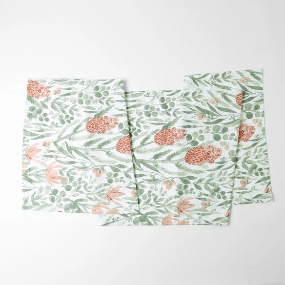 Bring a botanical style to your table with the Ellery napery range. Featuring native flora surrounded by leafy greenery, this range will add a pop of pattern and colour to your table.