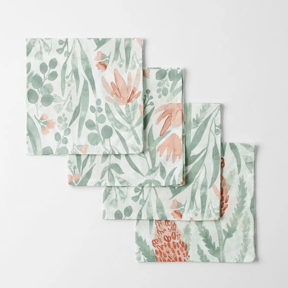 Bring a botanical style to your table with the Ellery napery range. Featuring native flora surrounded by leafy greenery, this range will add a pop of pattern and colour to your table.