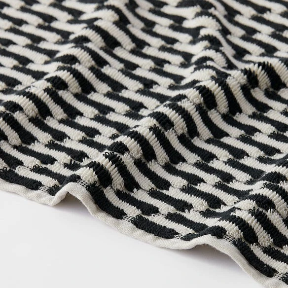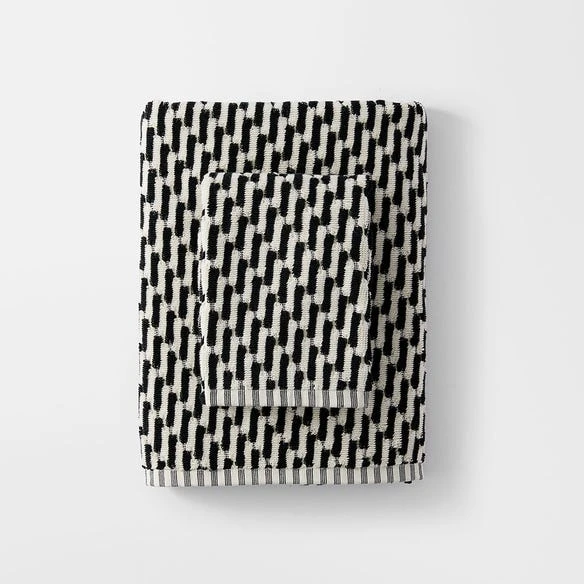Introduce pattern to your bathroom with the Jasper Bath Towel in black and white. Made from soft combed cotton, these towels feature a geometric pattern for a beautiful contemporary style.