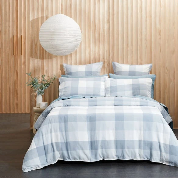Bring extra warmth into your bedroom with the Lincoln Check Quilt Cover in Blue. Crafted from wonderfully soft brushed cotton, this design features a yarn dyed check for a classic and cosy style. Fully reversible and finished with a twin needle stitch, coordinate with European pillowcases to complete the look.