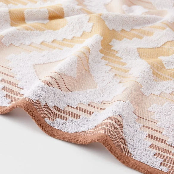 Elevate your bathroom style with the Noah Bath Towels in Nutmeg. With a bold patterned style and tassel fringe detail, this geometric design will add both colour and texture to your bathroom.