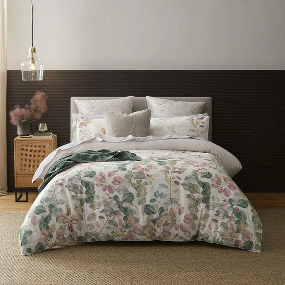 Designed and styled in Australia, contemporary Cotton House designs are perfectly suited to the relaxed Australian way of life. Create an elegant style in your bedroom with the Smokebush quilt cover. Made from luxurious cotton sateen, Smokebush stems are hand-painted in soft watercolour shades of green, red, and purple.